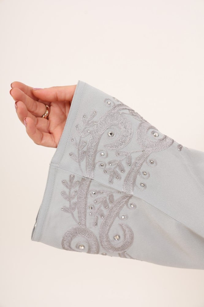 The Swarovski crystal embroidery details on the sleeves add a touch of distinction to the abaya making them a standout and breathtaking feature. It is a fantastic and unique fashion piece that catches attention and makes you feel confident and beautiful.