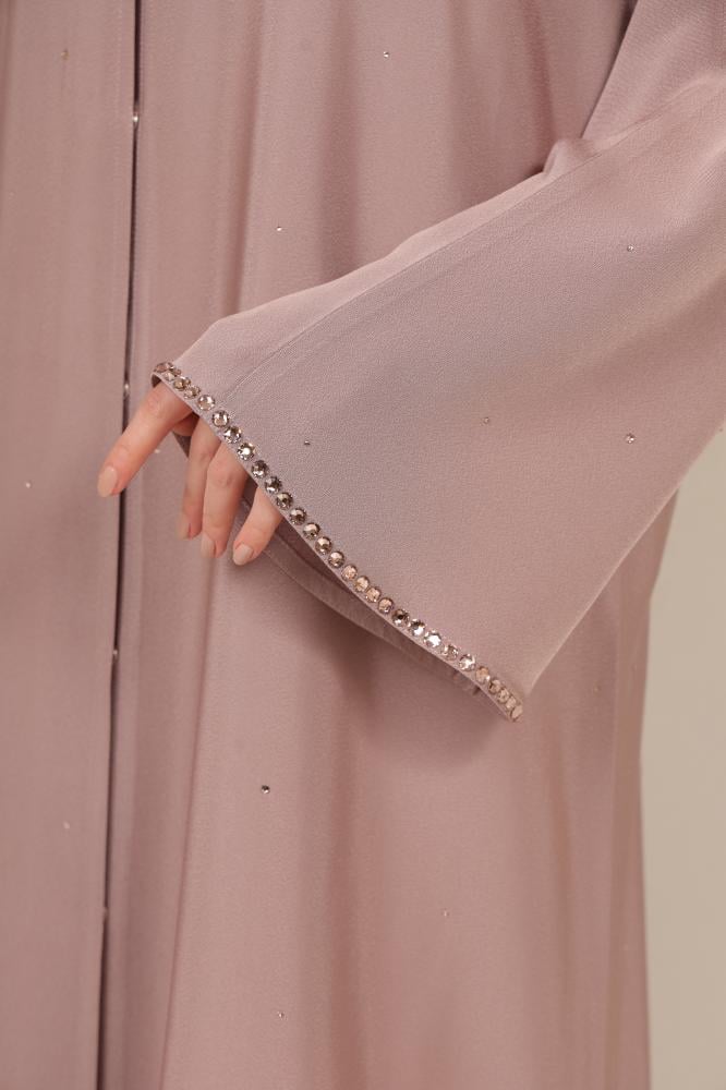 This Salona Swarovski abaya comes in Kavita modal. It is an embodiment of modern luxury and sophisticated elegance, designed to turn heads at every occasion. This abaya is characterized by its careful details that blend simplicity and allure in perfect harmony.