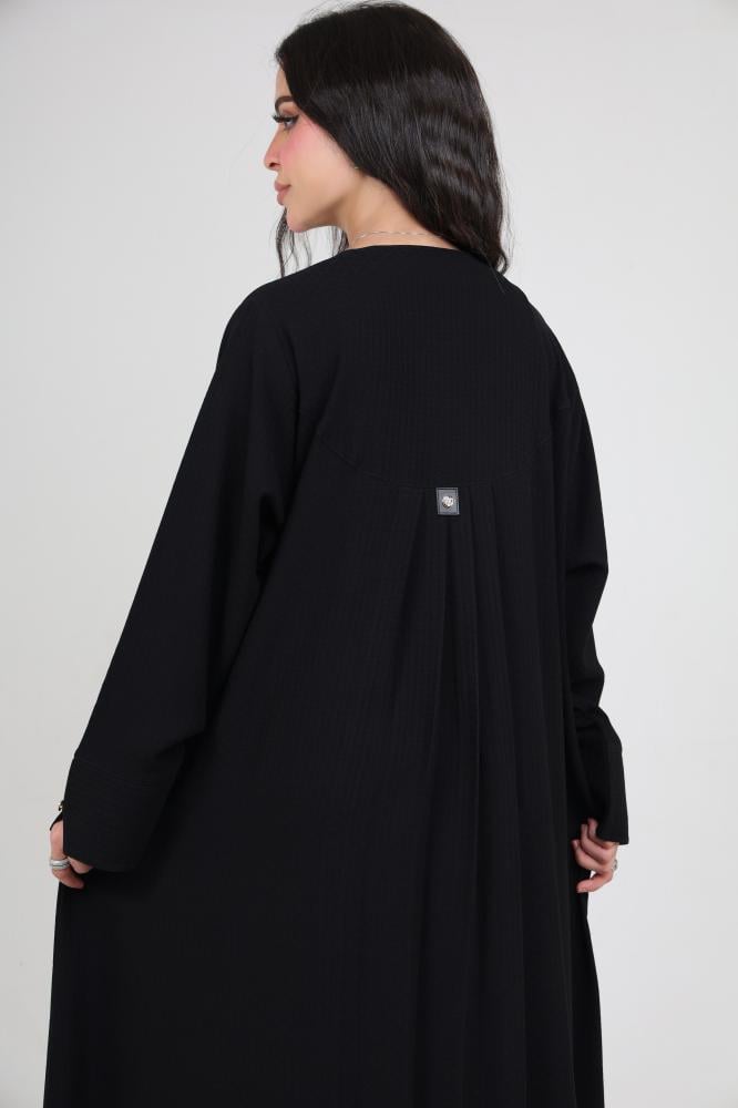 Let Zareen abaya in Fekro fabric with back ruffles a part of your wardrobe and enjoy the elegance and allure it brings to your look every time you wear it.